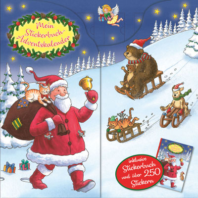 Konzeption, Layout und Illustrationen für einen Adventskalender mit Stickerbuch und