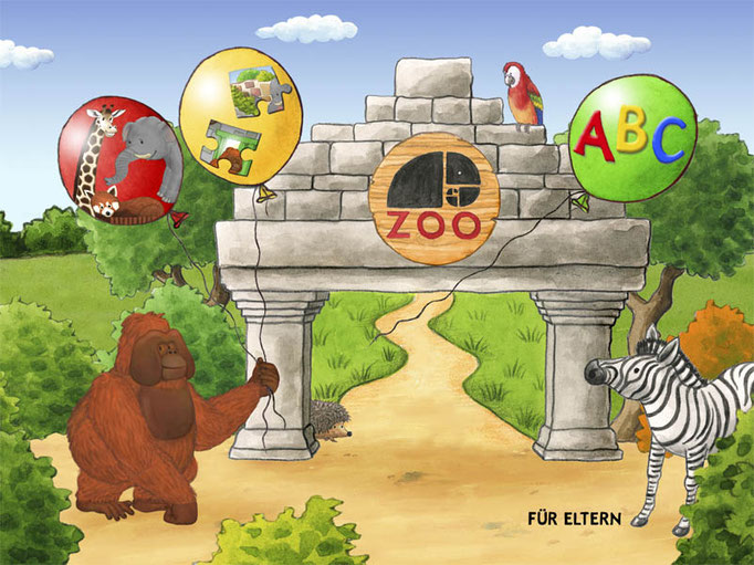 Konzeption, Layout und Illustration für eine Kinder-App des Zoos Osnabrück.